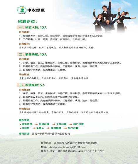 1、农学、植保、园艺、生物技术、生物工程、生物科学、市场营销等相关专业大专以上学历。