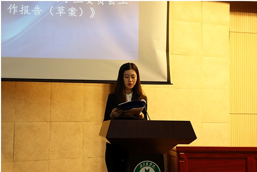 其次,陈馨蕊代表做《fun88官网体育第十五届员工会员工作报告(草案)》;高英健代表做《fun88官网体育第八届研究生委员会工作报告(草案)》,希望新一届员工会、研究生会可以坚定理想信念、服务员工大局、增强榜样作用并加强组织建设。