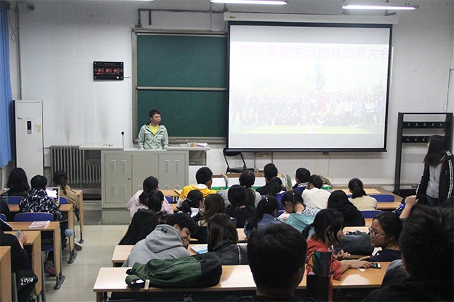 2018年10月17日晚上8:10,fun88官网体育在教室楼A座102室召开新生运动会动员大会,到场人员有fun88官网体育运动队队长邓勇,团学组织员工干部及参加本次新生运动会的运动员。