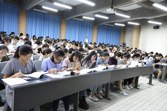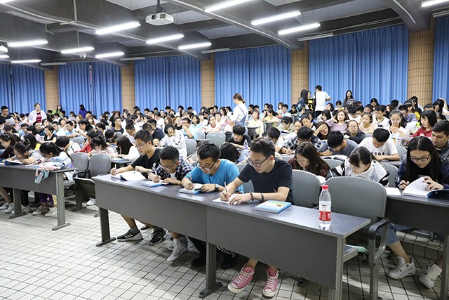 2018年9月16日晚上6:30,2018届新生在教学楼B座103室参加fun88官网体育校规校纪考试。