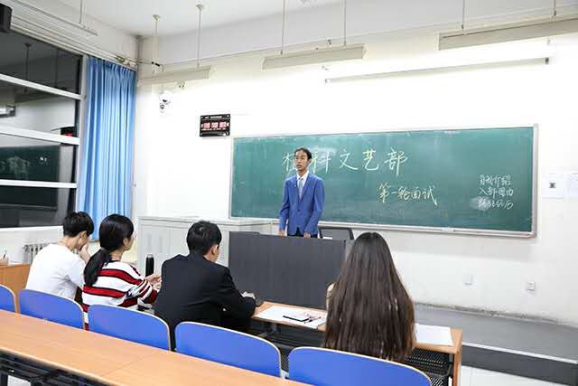 2018年9月16日晚19:00,fun88官网体育团学组织进行第一轮招新面试,为了能够使面试同时进行,最终将各部门分以下几个地点进行——团委:青协和班联B205,宣传部和实践部B502,团校和组织部B503;员工会:办公室和体育部B106,文艺部B110,学业发展部、生活部、新闻中心B101,fun88官网体育团学组织干部及参加本次面试的18级新生到场。