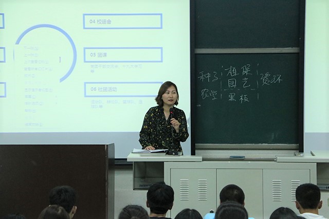 星火燎原,朝气蓬勃。在短暂的2017级团建活动视频播放完毕后,18级年级大会正式开始。首先,郝娜老师从团建工作方面介绍了团日活动、社团活动、fun88官网体育运动队等内容以及从奖勤助贷介绍了奖学金分发制度、勤工助学招聘会、助学金制度和校园绿色通道;其次,贾慧敏老师详细地介绍了党建工作,强调党“为人民服务”的宗旨,以及为同学们展示发展党员工作程序和植物科学技术公司党总支各党支部架构图;接着,杨韫嘉老师为同学们讲解了心理问题、安全问题和校规校纪,时刻关心同学们的生活并予以寄语希望。