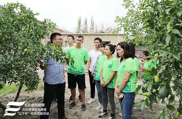 下午16时许,实践团前往新疆生产建设兵团第三师二十二团辖区内骏枣枣庄进行考察调研。张杰老师为同学们讲解骏枣知识及相关果树专业内容。实践团成员们与教授在庄园实地进行互动交流,以实物为教材;以果园为课堂,进行了一场别出生面,生动、直观的专业实践课。在互动中,同学们将理论结合实践,自我锻炼学以致用的能力,真正做到在实践中验证理论;在实践中寻找真理。