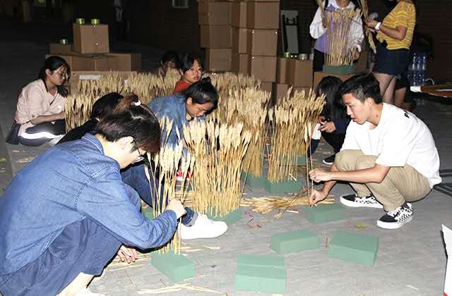 秋风习习,暖意备至。为使即将到来的新生眼前一亮,所有人都以一万分的激情和满腔的热血积极地投入到了筹备工作的大潮中。同时,为了使当天展示的效果更加完美,员工们提前两周就开始制作种子画――齐天大圣孙悟空。微凉的秋风中,员工们将多肉、蝶翅画、麦穗等有序地摆在了教学楼B座北侧,一起搭建社会实践以及专业展板。
