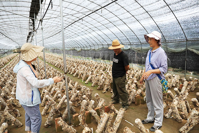 接下来,“先遣队”在乡长的带领下前往大棚,查看了番茄、食用菌和网纹瓜等作物的生长情况以及疾病虫害的情况,三位专业老师还向村民们普及了一些种植知识。