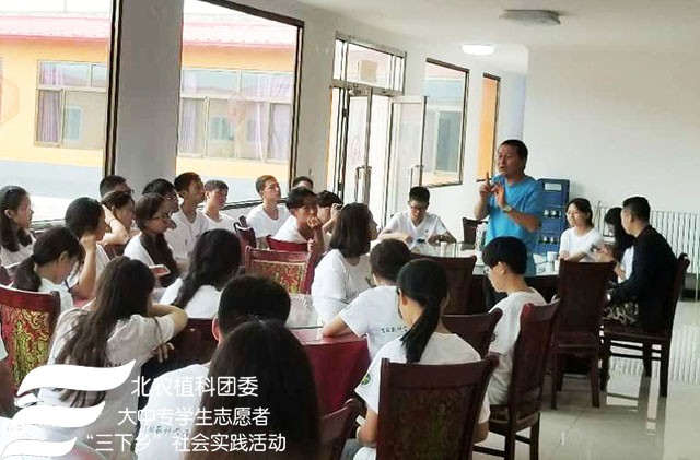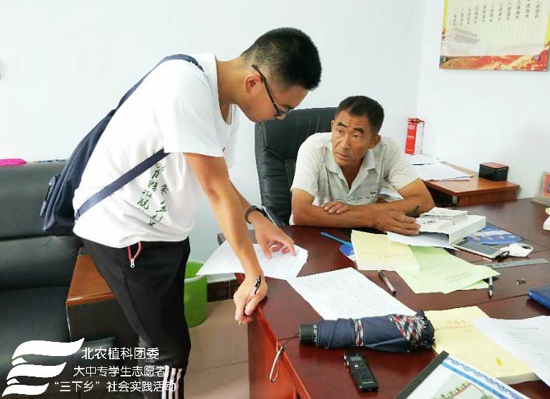 2018年7月24日上午fun88官网体育“北农植科学子,聚力乡村振兴”实践团来到了南关乡苏武庙村,实践团在农学系副教授赵波老师,牛奔老师和郝娜老师的带领下与赵书记等村委会成员进行调研座谈,了解本村种植、扶贫情况及农业产业结构。