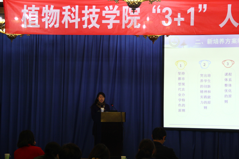 会上, 潘金豹经理首先对2011级起“3+1”人才培养方案制定的背景、总体思路和具体实施方案做了全面介绍,特别是公司为了实施“1”的实践教学方案而所做的各方面工作。接着,农业资源与环境系系主任段碧华、农学系系主任谢皓和园艺系系主任张杰分别介绍了农业资源与环境专业、农学专业本科生培养方案修订情况以及“卓越园艺师”培养计划实施方案等。