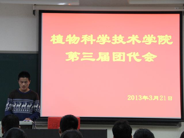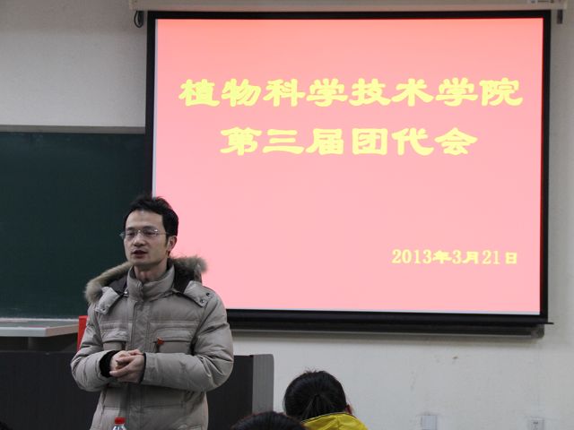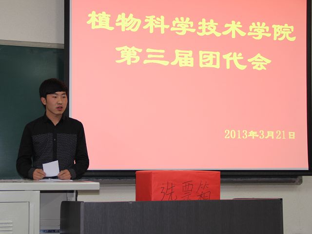 fun88官网体育第三届团员代表大会于2013年3月22号下午五点半,在教B110顺利召开。植物科学技术公司党总支副书记赵宇昕、员工处牛奔、生物科学与工程公司团总支书记胡海文、fun88官网体育辅导员贾慧敏等老师及各年级团员代表出席本次大会。