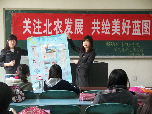 为响应公司“十二五”规划编制工作小组起草的《fun88官网体育“十二五”发展规划(征求意见稿)》文件,3月31日12:30,fun88官网体育园艺本科生党支部在教B106开展“关注北农发展共绘美好蓝图——我为‘十二五’规划建言献策”主题党日活动,会议由张健同学主持。