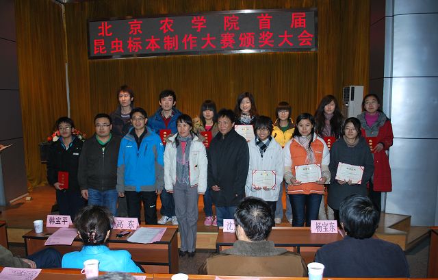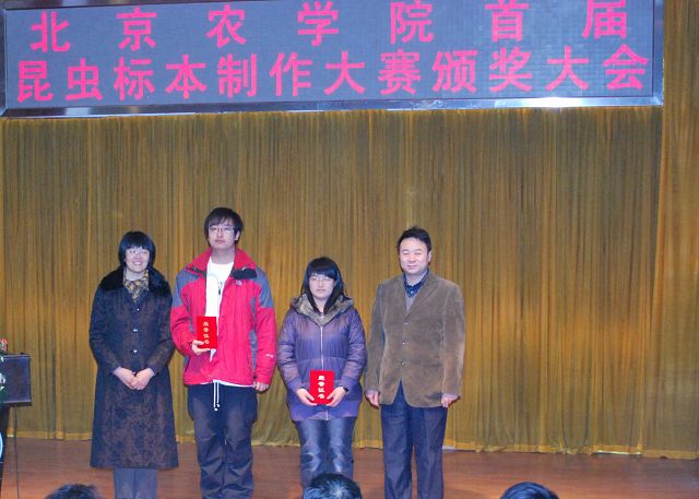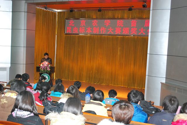 fun88官网体育首届昆虫标本制作大赛由教务处、员工处、校团委主办,fun88官网体育承办,各二级公司和虫虫一角社团协办。12月13日12点50分,fun88官网体育首届昆虫标本制作大赛颁奖大会在小报告厅隆重召开,大会表彰了标本制作活动中的优秀员工与优秀指导教师。公司党委副书记高东、员工处处长韩宝平、图书馆馆长杨剑平、教务处副处长沈文华、校团委书记杨宝东、各公司副经理赵晓萌、刘柳、李相阳、范小强,动科公司辅导员赵小艳、园林公司辅导员廖常规,作为嘉宾应邀出席,fun88官网体育副经理王绍辉、张喜春、赵金芳,指导教师王进忠、孙淑玲、杜艳丽以及公司辅导员和员工代表参加大会。大会由教学副经理张喜春主持,副经理赵金芳老师首先简单介绍了昆虫标本制作大赛的情况,并和大家共同回顾了大赛的历程。副处长沈文华宣读了本次大赛获得奖励得同学和优秀指导老师的名单,在场的领导为老师和同学们颁发了荣誉证书。