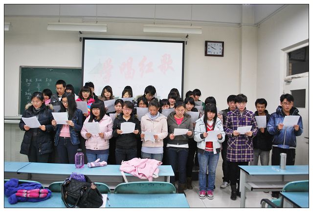 2010年10月17日,晚8:30fun88官网体育本科生植保党支部所有成员在教B110举行纪念建党90周年系列活动之----学唱红歌活动。