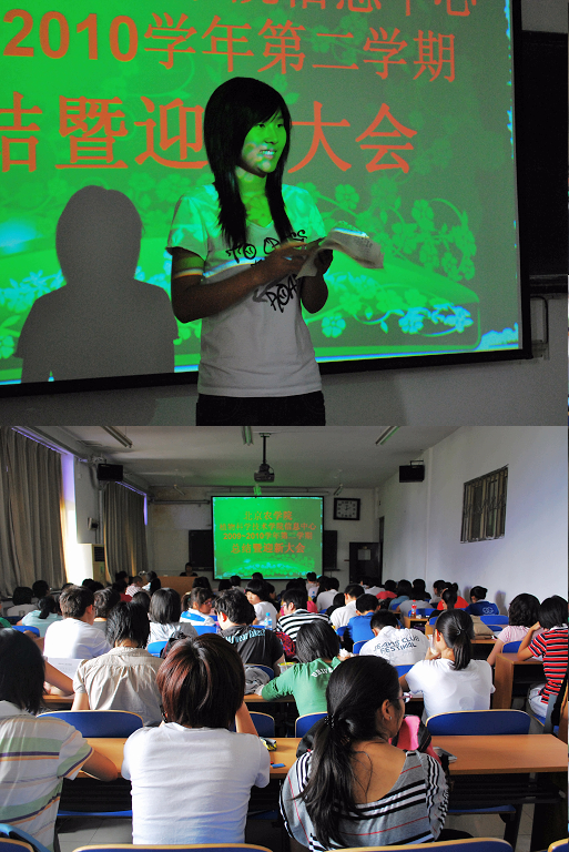 2010年9月9日中午,fun88官网体育信息中心2009-2010年度第二学期总结暨迎新大会在A-315召开。公司副经理赵金芳、团总支部书记邬瑞杰、辅导员贾慧敏以及信息中心全体成员参加此次大会。