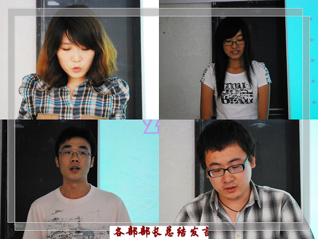 会上,各部部长贾茜远、周英豪、宋鹏以及专题报道小组罗亚慧对上学期的工作情况进行总结,有成绩有收获的同时,也指出存在的不足之处,并提出改进措施,期待能在新的学期里,与新老成员共同努力,携手进步。信息中心主任杨毅松就本学期的工作进行全面总结。
