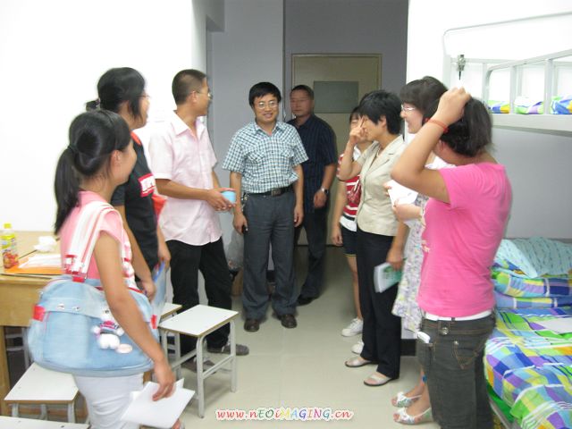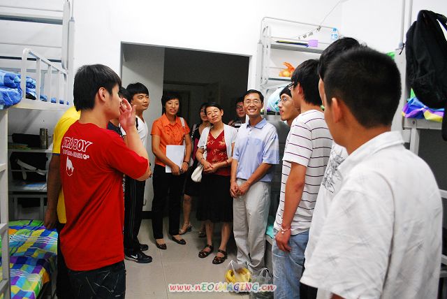 潘书记亲切的询问新生在生活上有没有什么困难,并强调无论有什么样的困难一定要及时和辅导员、班主任助理、班主任联系沟通。2010级外地生源较多,因此领导、老师们格外关心外地生是否在适应新环境上有问题,以及西藏、新疆少数民族新生在语言方面的困难。老师的关切话语,语重心长的嘱托,让新生们倍感温馨,纷纷对老师们的关心表示感谢,有的同学还鼓掌欢迎老师的到来,宿舍里一片和谐。
