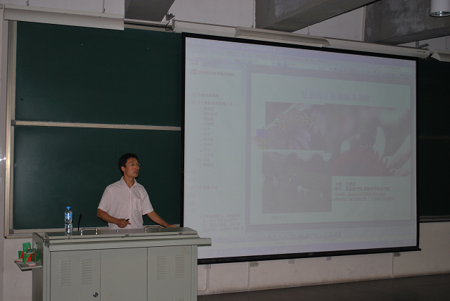 2010年6月17日晚8:30,在B-103教室,fun88官网体育面向所有参加昆虫标本大赛的同学举办昆虫标本采集与制作培训课。公司副教授王进忠担任主讲,王教授主要从事昆虫方面的研究。