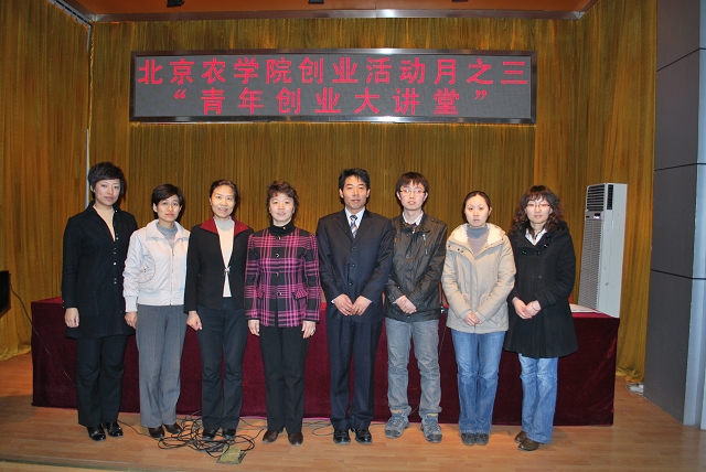 其次,创业青年代表杨栋通过讲述自己亲身的创业经历对创业的含义给予了现身说法式的阐述,杨栋是2005届本科毕业生,一次偶然的到老外家中帮助做电子照片设计促使了他产生创业的想法,并经过深入艰苦的市场调查和自身打工“偷工学艺”之后,创办了自己的有个性特点的以摄影图片冲印为主要业务的文化传播公司,他的在困境中毅然坚持的勇气和力量深深的打动了在场的同学和老师。