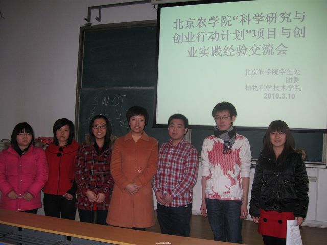 交流会在同学们的期盼中开始,首先是“科学研究与创业行动计划”获奖项目的交流,郭硕是北农经管2006级的员工,现在为“梦回北平”老北京民俗文化开发创业项目负责人,此项目是开发具有老北京特色的产品,他通过讲述自身的创业经历,先后从“经验交流、项目答辩和激情与理性并存”三个方面阐述了对老员工创业的理解;赵晴是城乡发展公司2007级员工,现在是“展览展示设计中心”项目参与人,此项目是2009年校“科学研究与创业行动计划”支持项目,她为同学们展示了项目中以及曾做过的艺术设计图片,给同学们更多的动力;牛宇鑫是植科2008级的员工,也是“孙胡沟村都市农业规划”项目负责人,此项目也是2009年校“科学研究也创业活动计划”支持项目,在牛宇鑫的科研创新的过程中,遇到很多的困难,但他没有放弃他的想法并最终坚持了下来并获得了胜利。