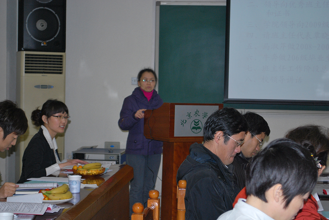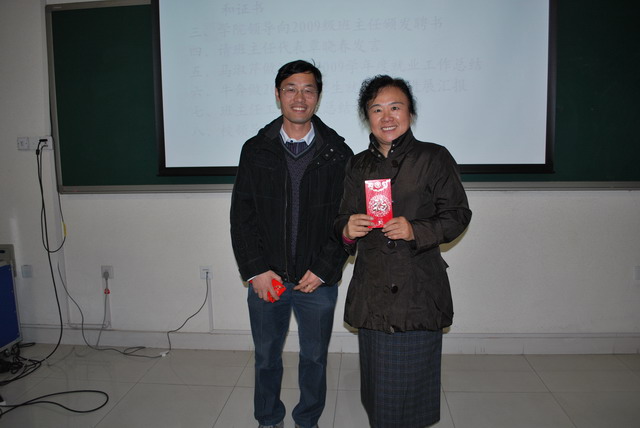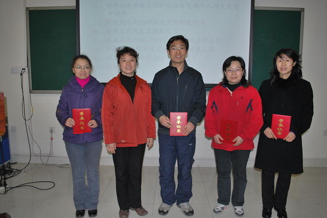 2010年4月21日下午,在教B209公司召开2008-2009学年度班主任工作、就业工作总结表彰大会,大会特别邀请到了公司党委副书记高东老师、209242班班主任校团委袁中立老师,公司全体教职工参加会议。