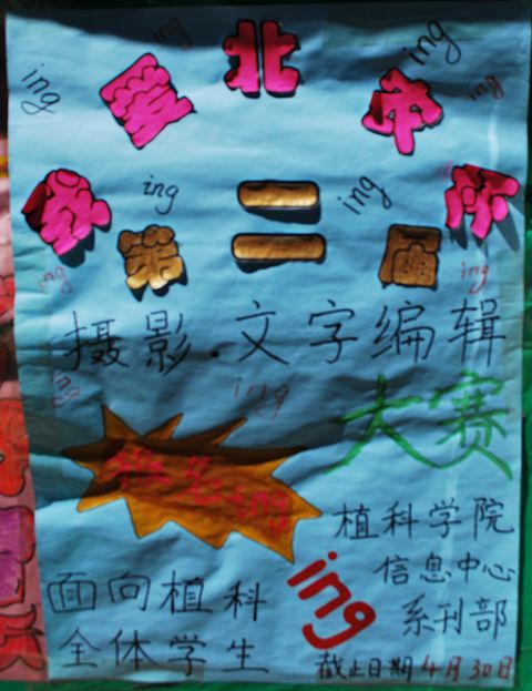 3、 同学们可以在2009年12月9日发布的fun88官网体育信息中心首届“我爱北农杯”摄影、编辑排版创意大赛作品展示上看到获奖作品以供参考。