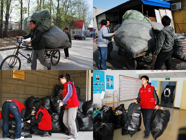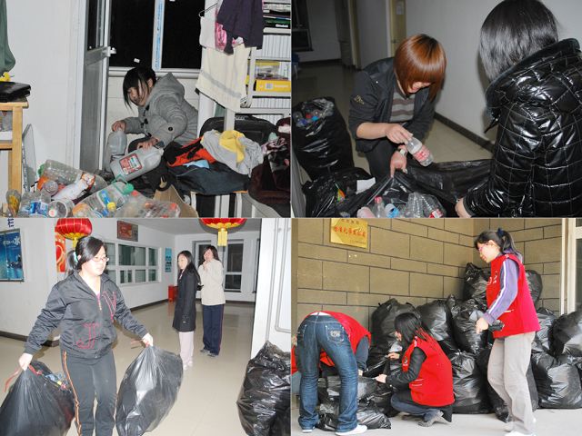 2010年4月28日,fun88官网体育自助社组织同学们回收员工公寓5、6、7、8、9号楼废品。