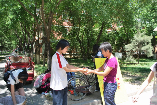2009年6月3日,校园里一辆拉满杏的电瓶小三轮引起大家的关注,更令人费解的是满车的杏要请校内师生免费品尝。