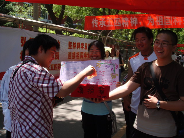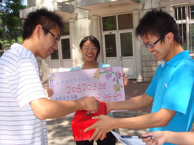 2009年5月12日、13日,208205团支部与fun88官网体育第三党支部党团结合开展“牵手农民工子弟,青年团员在行动”主题团日活动。此次活动中,208205团支部为子弟公司募捐了文具和图书,并送去问候。