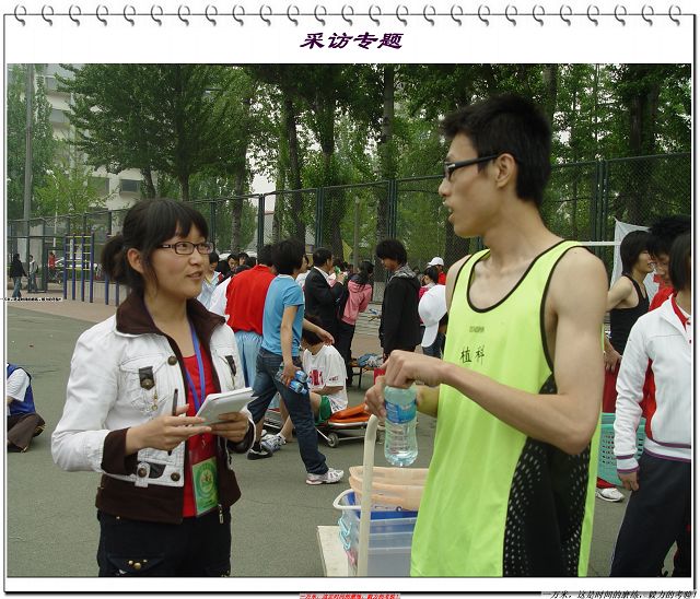 男子400米决赛中,公司冯子烨取得了第三名的好成绩。虽然大三的功课很忙,少有时间训练,但为了给公司争得荣誉,他依然选择参加比赛。在采访过程中,记者发现他身上有很多擦伤,经追问才知道是在比赛时意外受伤的。他笑着说:“这些只是皮外伤,能为植科争光才是最重要的。”