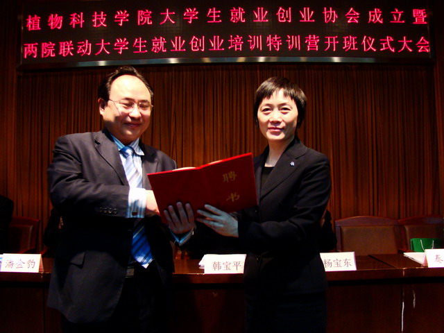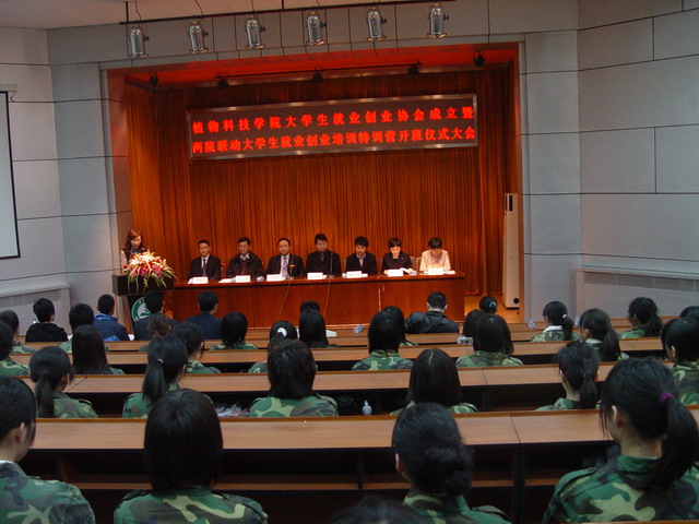 2009年3月28日上午9时,植物科技公司老员工就业创业协会成立暨老员工就业创业培训特训营开班仪式大会在小报告厅隆重举行。中国农民大学教授张斌国、中国农民大学联合创业公司黄鹏程等6位高级培训师、公司党委员工工作部部长韩宝平、校团委书记杨宝东、植物科技公司党总支书记潘金豹、经理秦岭、副经理赵金芳出席大会,院辅导员马淑芹、牛奔、贾慧敏及全体协会会员参加了大会。辅导员助理邬瑞杰主持大会。