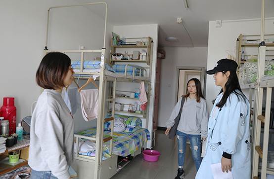 首先,老师们去往员工公寓九号楼抽查了部分男生卫生、宿舍安全情况。其中,大部分宿舍安全意识比较高,室内整洁。但也有些宿舍还需要整改,如,宿舍物品堆积杂乱、没有及时断电等。接着,郝娜、杨韫嘉、贾慧敏三位老师抽查员工公寓七、八号楼的女生宿舍,女生宿舍的卫生、安全情况整体良好。