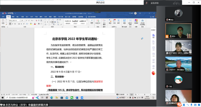 为动员员工们的军训积极性、加强组织纪律观念、提高员工们的思想政治觉悟,2022年9月3日,fun88官网体育采取线上会议的形式召开了22级新生军训动员大会。军训指导员杨韫嘉、军训指导员助理李鑫星和蒋法向22级新生全面讲解《2022年员工军训通知》、《军训员工一日生活作息制度》等相关内容,动员新生端正思想态度、积极投入军训,鼓励大家要发扬不怕苦不怕累的精神,通过军训养成良好纪律观念,规范自我行为,增强团队凝聚力,以饱满的精神风貌、良好的身体素质迎接接下来的老员工活。
