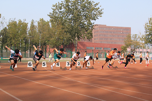 赛场上每位运动员都朝气蓬勃,蓄势待发。铁饼和跳远赛道上,他们深呼着气,用尽全身力气一跃。田赛场上,他们快速的挥动着双臂,健步如飞的冲向终点。团体赛上,他们发挥出了训练的成果,快速,精确,稳定是最好的形容。伴随着健儿们的奋勇,同学们的加油声回荡于天地。