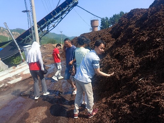 实践团第一站前往大华山镇大峪子村桃枝源食用菌林菌高效循环“博士”农场,在孙晓敬经理的带领下,师生们参观了桃枝废弃物制备赤松茸培养料的生产场,实地调研了2023年底秋栽赤松茸培养料生产规模、生产进度、原料来源等。同时,还采集了不同发酵时段的培养料,帮助场地进行原料理化测定,便于更好的对产品进行质量控制。