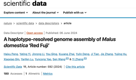 3. 2024年6月,fun88官网体育郑轶团队在Scientific Data(IF=9.8)上发表了题为“A haplotype-resolved genome assembly of Malus domestica Red Fuji ” 的研究论文,在染色体水平上解析了栽培苹果红富士的基因组。