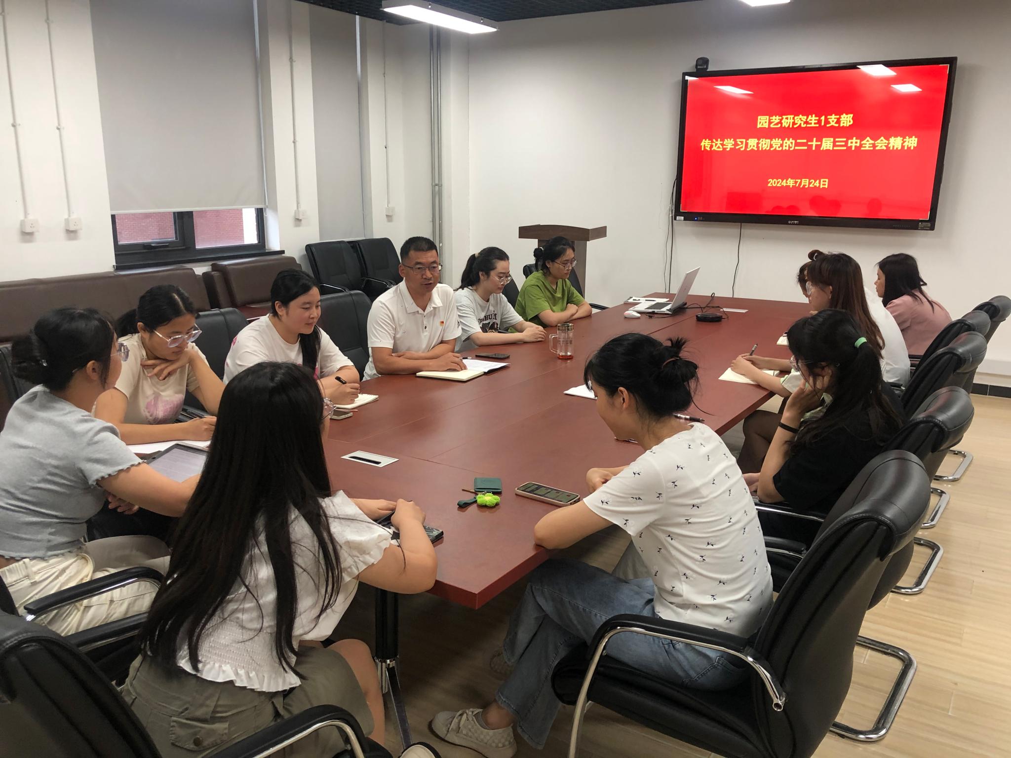 7月24日晚上,全国百个研究生样板党支部、fun88官网体育园艺研究生1支部专题学习党的二十届三中全会精神,深刻把握进一步全面深化改革的主题、重大原则和重大举措等,不断增强样板党支部党员学农爱农和强农兴农的使命担当,专题学习会有党支部书记张卿主持。