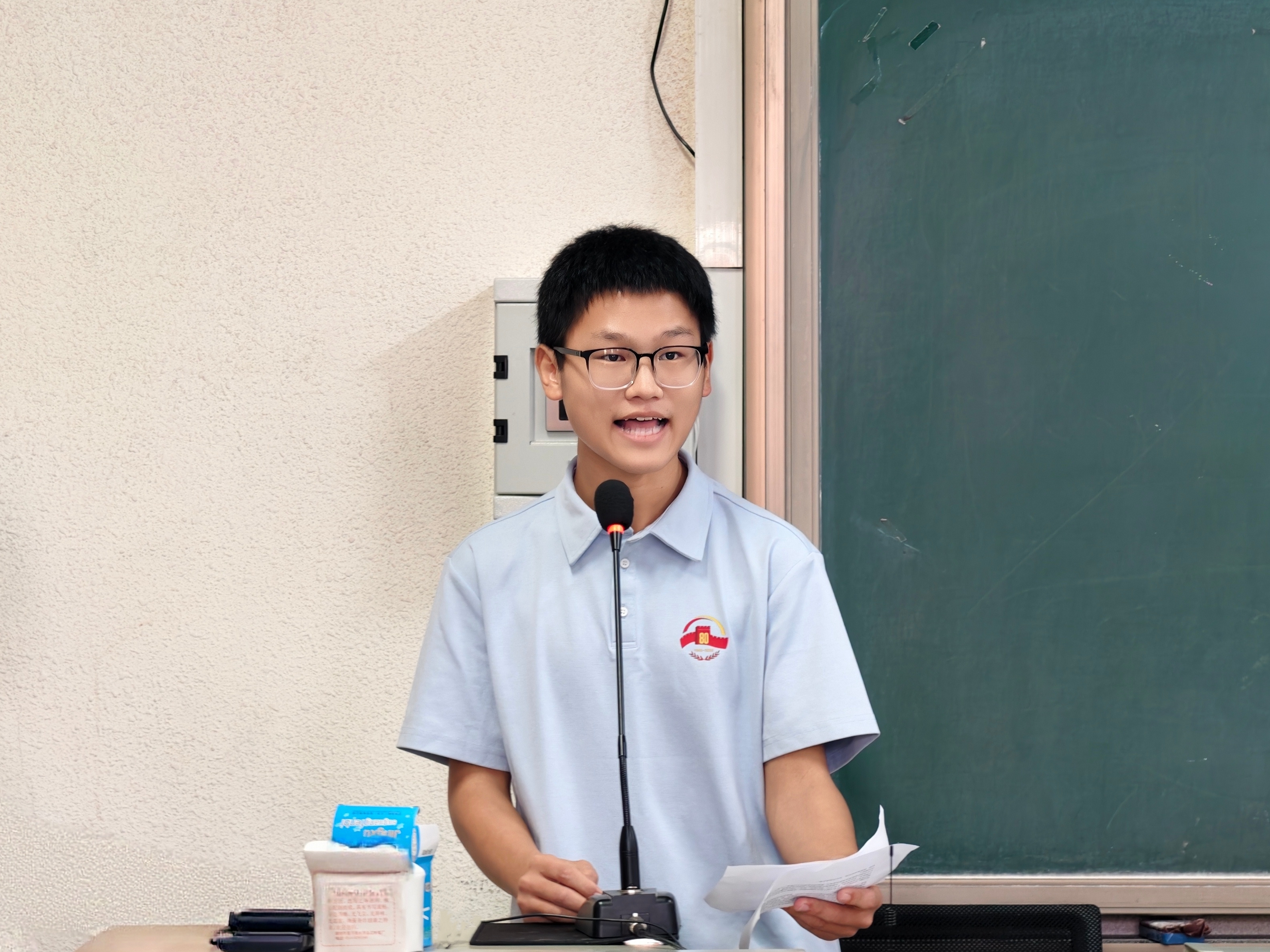大会伊始,来自fun88官网体育九三合唱团的梁舒奕、张志鹏、杨培涛作为代表,分享了在天安门广场参与演出的难忘经历。从五月初训到九月绽放,合唱团成员跨越酷暑,克服识谱困难、发声不准等难题,坚持排练,最终完美唱响《松花江上》《保卫黄河》等经典曲目。他们结合自身经历重温抗战历史,感悟民族精神,生动诠释了青年一代对历史的铭记与对荣光的致敬,让在场新生深刻体会到合唱中凝聚的集体力量与家国情怀。
