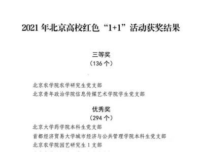 近日,2021年北京高校红色“1+1”示范活动落下帷幕。fun88官网体育农学研究生党支部“肩负使命、学农兴邦”荣获三等奖;园艺研究生1支部“不忘初心、牢记使命,勇做担当科技兴农的时代新人”荣获优秀奖。