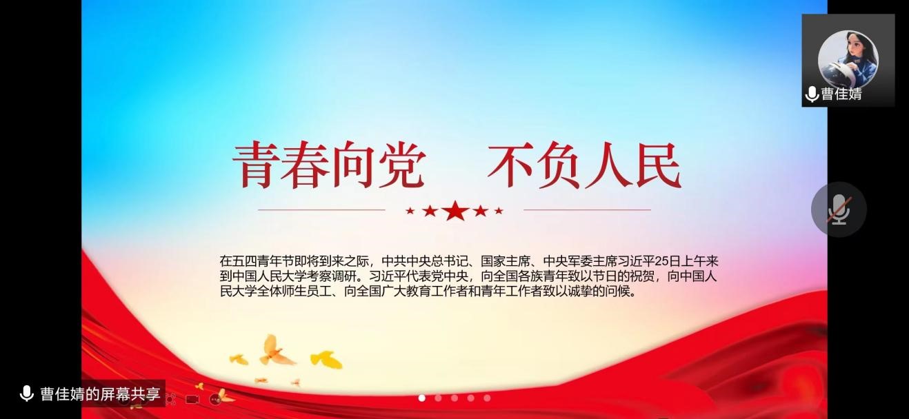 在五四青年节即将到来之际,习近平总书记来到中国人民大学考察调研,他指出,立足新时代新征程,中国青年的奋斗目标和前行方向归结到一点,就是坚定不移听党话、跟党走,努力成长为堪当民族复兴重任的时代新人。fun88官网体育团委组织各团支部开展“学习习近平总书记考察中国人民大学时发表的重要讲话”主题团日活动。习总书记的重要讲话引发了同学们的强烈反响,大家表示在今后要坚定不移听党话、跟党走,为中华民族的伟大复兴作出自己的贡献。