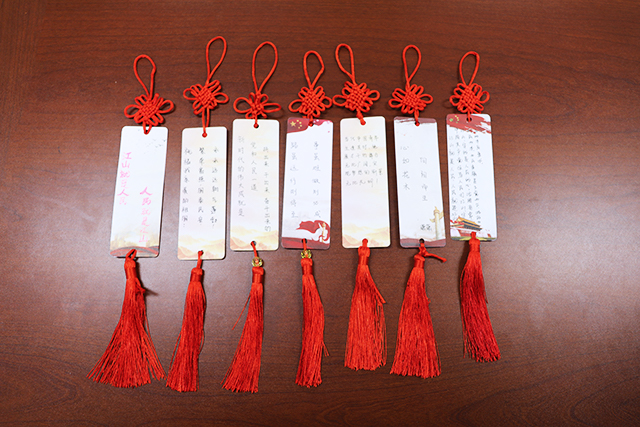 积极分子王佳丽说:“在此次‘学报告 书金句 踔厉奋发向未来’主题党日活动中,我们再次进行了党的二十大报告内容的学习,朗读和书写了报告中的金句。在动手制作中国结书签的过程中,我深刻体会到了中国结中蕴含的团结和谐的内涵。在将二十大金句书写在书签上的那一刻,我心中有种由衷的自豪感。”