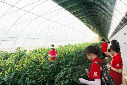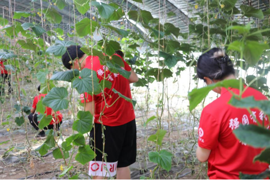 脚下有多少泥土,心中就有多少情怀。实践团成员跟随任师傅的步伐,走到田间地头,将习近平总书记关于“三农”的重要讲话精神和课堂所学专业知识转化到实际生产中,为温室内的黄瓜进行落蔓,忍受着温室内让人汗如雨下的高温和刺人的黄瓜藤蔓,真真切切地体会到了农业生产一线的不易。青年员工只有在学中干、干中学,活学活用,将理论与实践相结合,才能真正做到爱农业、懂农业、助农业,成为新时代“三农”新人。