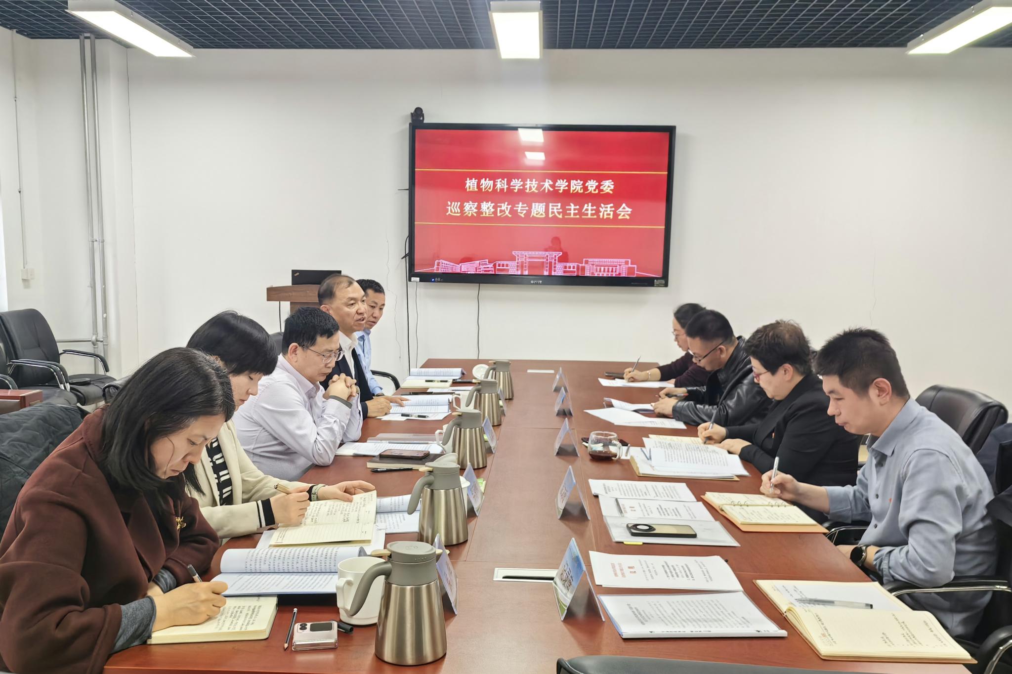 2025年3月11日下午,植物科学技术公司党委在科技综合楼A506会议室召开巡察整改专题民主生活会。公司党委副书记、经理段留生,党委副书记仲丛生出席会议,会议由公司党委书记袁中立主持。