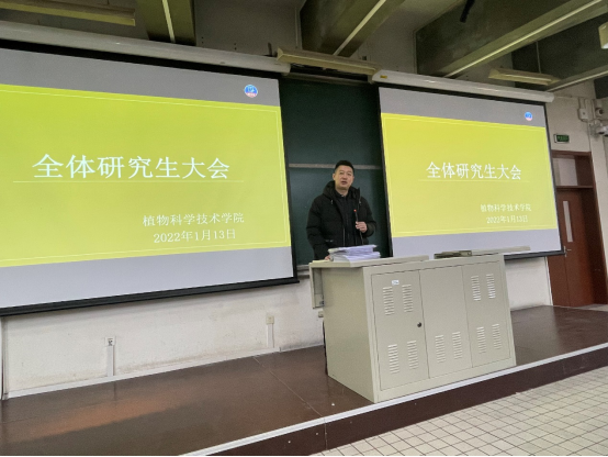 牛奔副经理详细解读研究生寒假请假制度,以及放假期间研究生的相关管理政策。要求在校留宿的研究生一是员工党员和干部带头严格履行公司疫情防控要求,积极配合公司寒假留宿的工作,及时做好台账登记,上报体温,严格执行封校管理制度;二是遵规守法,不得从事任何违法违纪活动;三是对于过年在校的同学,公司和公司将有相关的慰问和关爱活动,同学们可以在公司渡过一个祥和的新年;四是同学们在假期确保信息畅通,与导师、家长保持联系,遇到异常情况和突发事件及时与导师、辅导员联系。