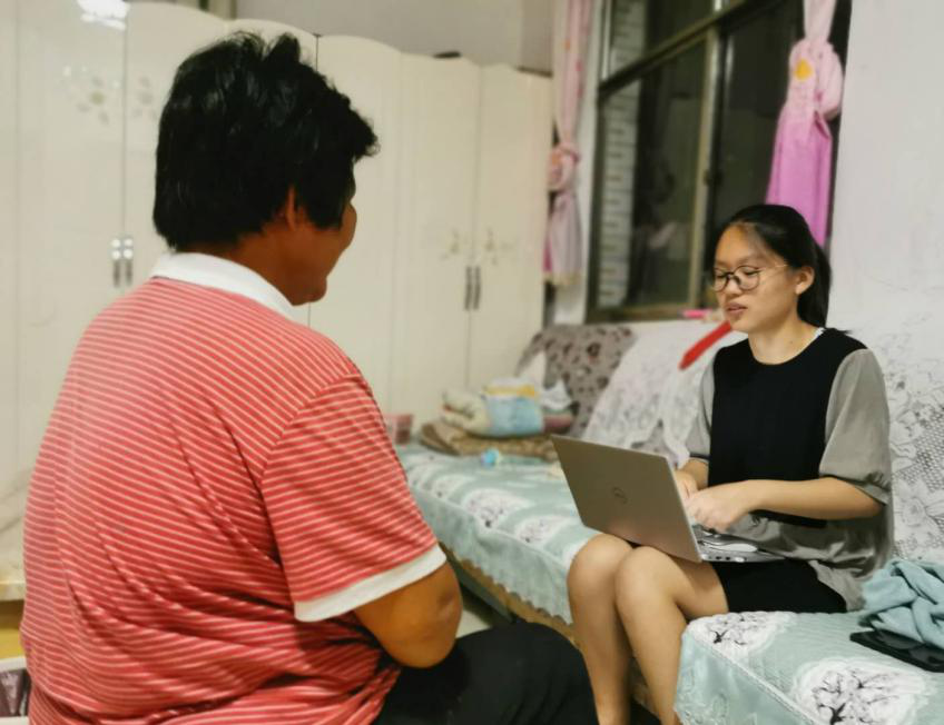 暑假里,河北的韩佳童同学为了对当地脱贫攻坚的现状和成果、举措与对策展开调研,她来到了石家庄市晋州市马于镇的一个果园和当地果农交流谈心。