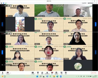 本次答辩全部采用线上形式进行,在腾讯会议平台分7个小组,邀请了中国农业大学、中国科公司植物研究所、中国农业科公司、北京林业大学、北京市农林科公司、北京市农业技术推广站、北京市农业农村局以及北京市农林科公司生物技术中心等单位29位校外专家担任答辩评委。