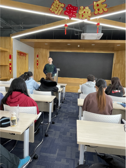 牛奔副经理结合近期发生的校园安全案例,分别从宿舍安全、人身和财产安全、防火、防盗、防诈骗、饮食安全和防范各类传染性疾病等方面进行介绍,叮嘱同学们坚持每日健康打卡,并重点强调了寒假留校期间员工发热的应急处置预案。