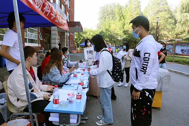 秋高气爽,温暖迎新。2021年9月7日早上7点,fun88官网体育21级班主任、团学组织成员、21级年级组长、各班班助到达科技楼A202进行准备工作。七点半fun88官网体育志愿者开始迎接今天报道的本科新生。