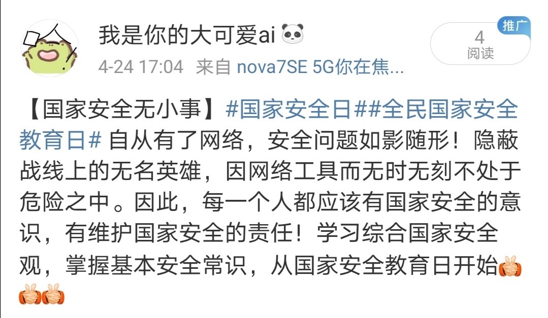 各团支部开展了丰富的活动:班级组织国家安全教育主题班会、观看“千万师生同上一堂国家安全教育课”特色教育活动。同时引导员工参与“微博#国家安全日#话题”互动,组织员工通过官方账号、个人账号参与#国家安全日#话题标签讨论。在班级中组织开展党史知识竞赛和保密知识竞答活动。关注“中国反邪教”微信公众号,参加“对邪教说不”签名活动。