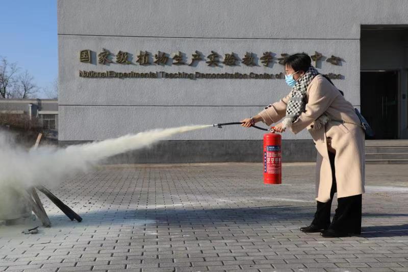 消防演习的第一项目是模拟火场逃生。首先李俊生老师讲解了有关消防演习的注意事项,包括认清逃生通道的位置、注意浓烟、注意路线等。同学们有条不紊、井然有序地撤离教学楼,并到达了安全区域。消防演习的第二项是练习使用干粉灭火器灭火。在老师的引导下,每一位同学都体验了如何快速正确使用灭火器扑灭火苗。