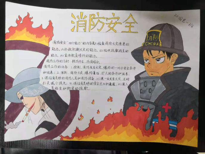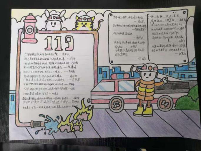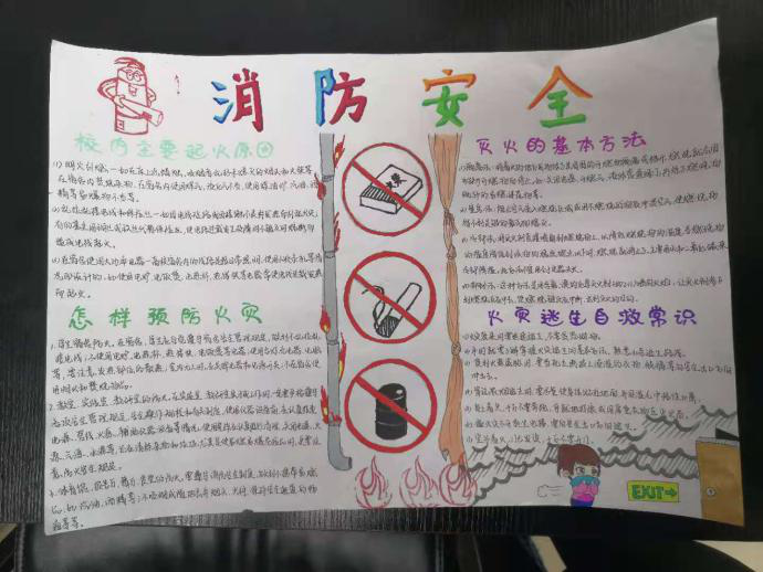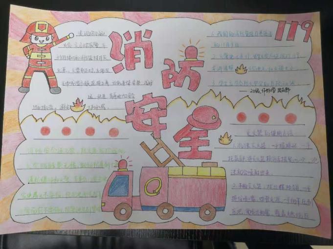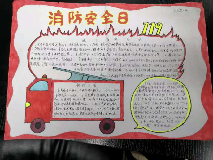 班会结束后全班同学共同绘制“消防安全”主题手抄报,各班设计的手抄报内容丰富、新颖别致、富有创意,彰显了每个班级自身独特的班级文化。此次活动营造了一个良好的学习生活环境以及积极向上的班级精神风貌。