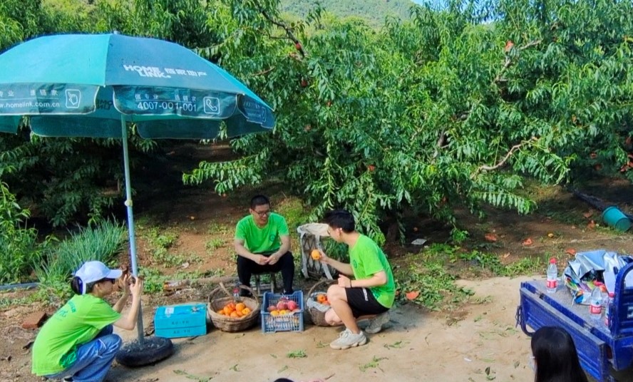 炎热的七月,也是收获的季节,实践团顶着烈日深入田间地头,前往桃林拍摄宣传片,用视频展现苏子裕村的美丽景色和乡村生态,助力大桃售卖。